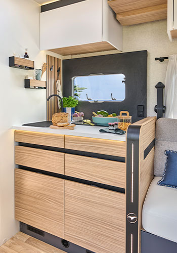 En 2026, nos profilés Évidence se parent d’un nouveau look extérieur pour plus de caractère et de modernité. En plus des nouveaux stickers extérieurs au style unique de la collection 2026, de sa nouvelle face arrière (plus moderne et dynamique), et de son store banne noir (véritable touche d’élégance pour sublimer les lignes du véhicules), les profilés Évidence viendront de série avec une cabine et une calandre noire, pour un look encore plus affirmé.