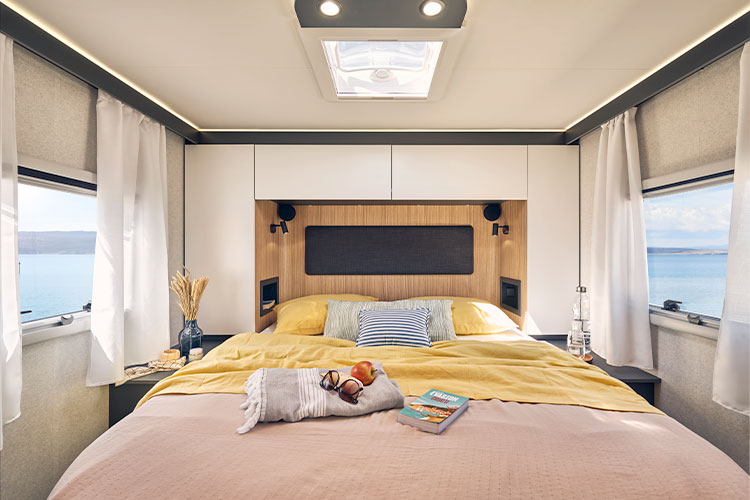 - Bodega de altura regulable eléctricamente bajo la cama central, para obtener aún más volumen de almacenamiento.