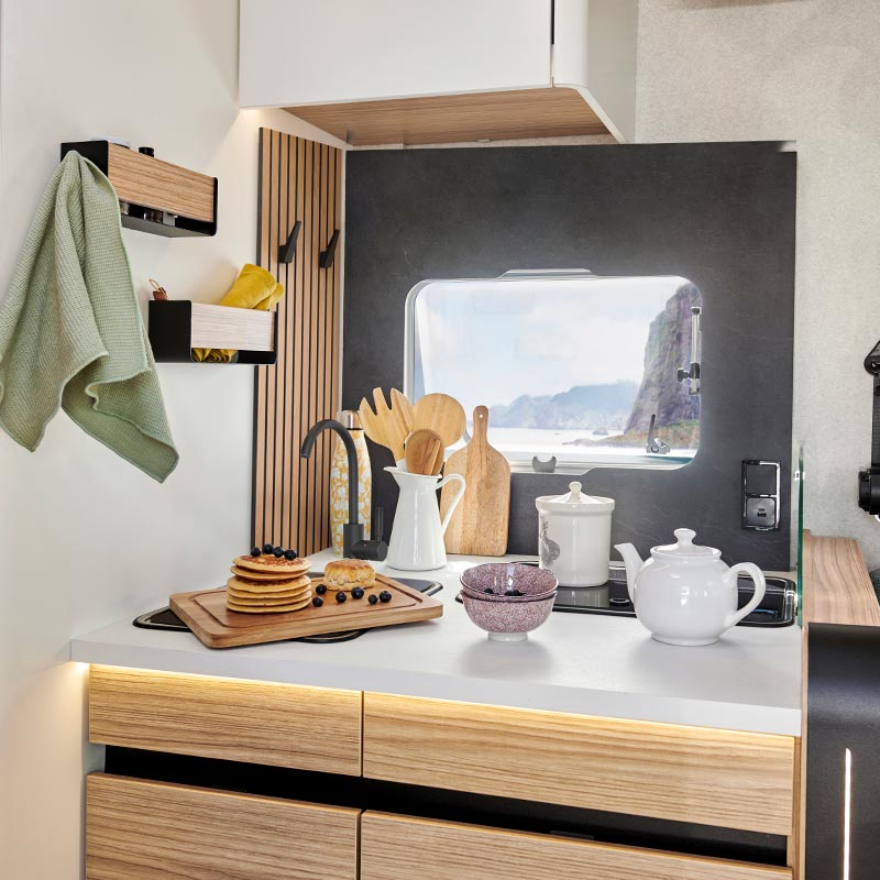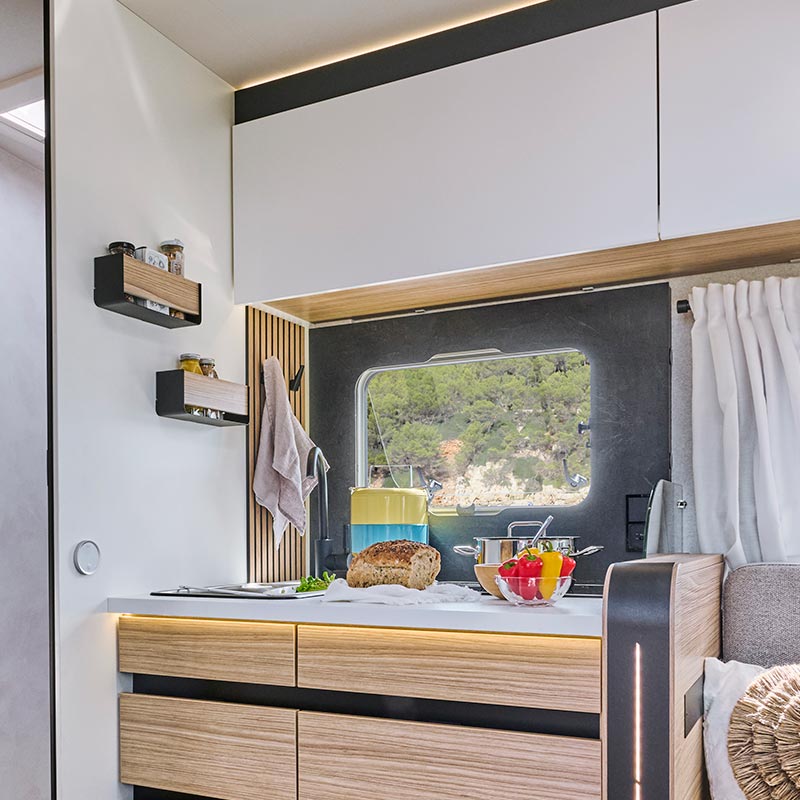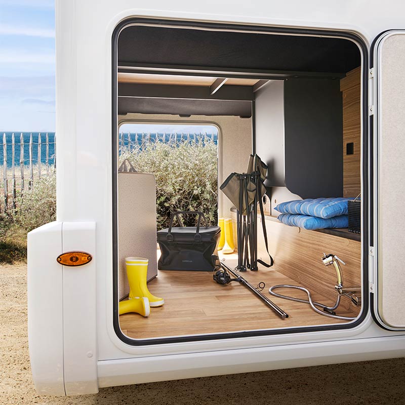- a gas connection directly accessible from outside: take advantage of completely safe outdoor cooking! Prepare some great food on a gas heating ring, a plancha grill or barbecue using the motorhome supply with no need for additional cylinders or complex installation.