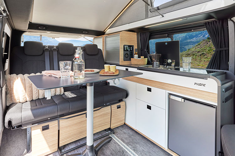Discover Pilote campervans equipped with a sliding rear bench, available in two lengths: 5 m or 5.40 m! The advantage of a sliding bench in a campervan is undeniable. Offering unparalleled flexibility, it optimises the interior space to suit your needs.