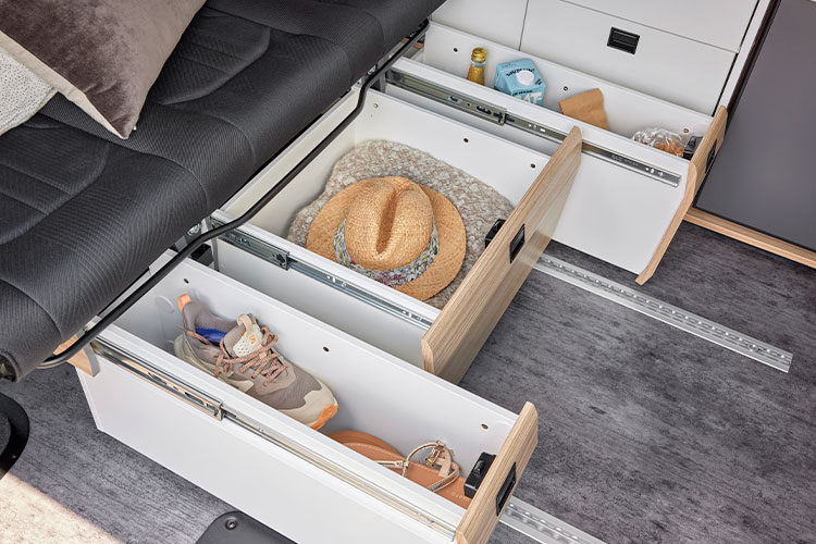 L’offerta Pilote Vans Évidence è disponibile sui modelli CV505BC e CV545BC, van camperizzati con panca scorrevole, che ridefiniscono il comfort e la libertà di viaggio. Questo tipo di van ti consente di modulare lo spazio interno secondo le tue esigenze, scegliendo tra un ampio spazio living o un grande vano di carico, ad esempio per le biciclette