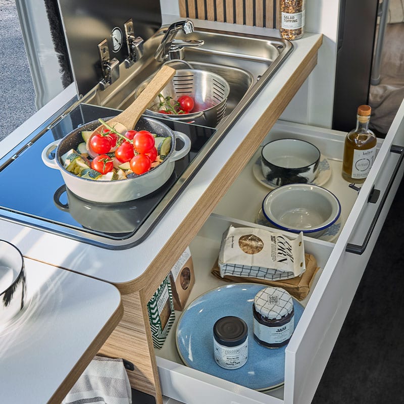 Nel 2026 entra a far parte della gamma un campervan con una pianta unica: il V630S. Un veicolo perfetto per la famiglia, con letti a castello posteriori modulabili che si adattano a tutte le esigenze e a tutti gli stili di viaggio.
